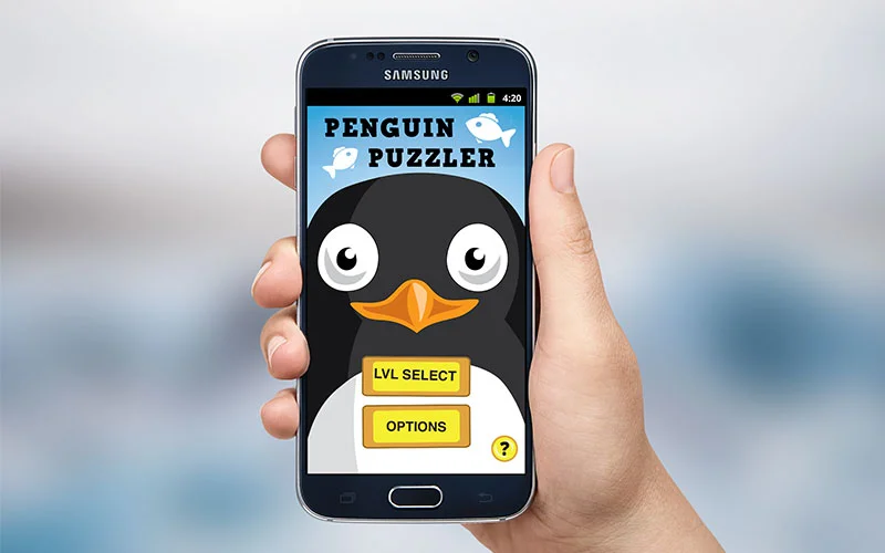 "Our hungry little penguin pal has a hard head and crazy sliding skills, but he needs your help to find his way across the ice. Help him get to that fish! Navigate 16 levels of sliding around, zipping through pipes, launching off of ramps, and smashing blocks of ice."